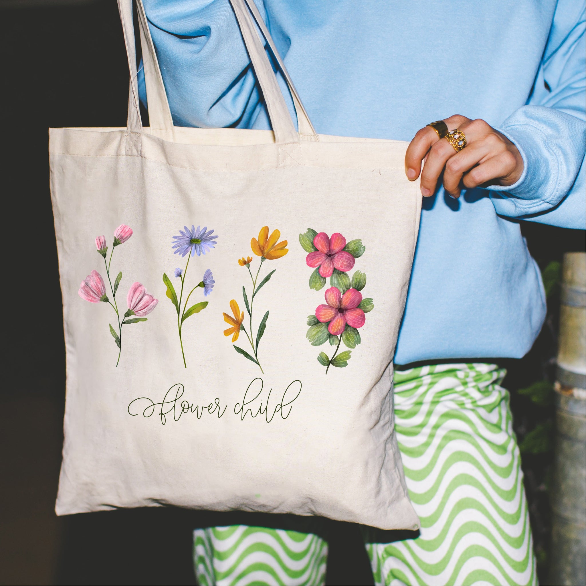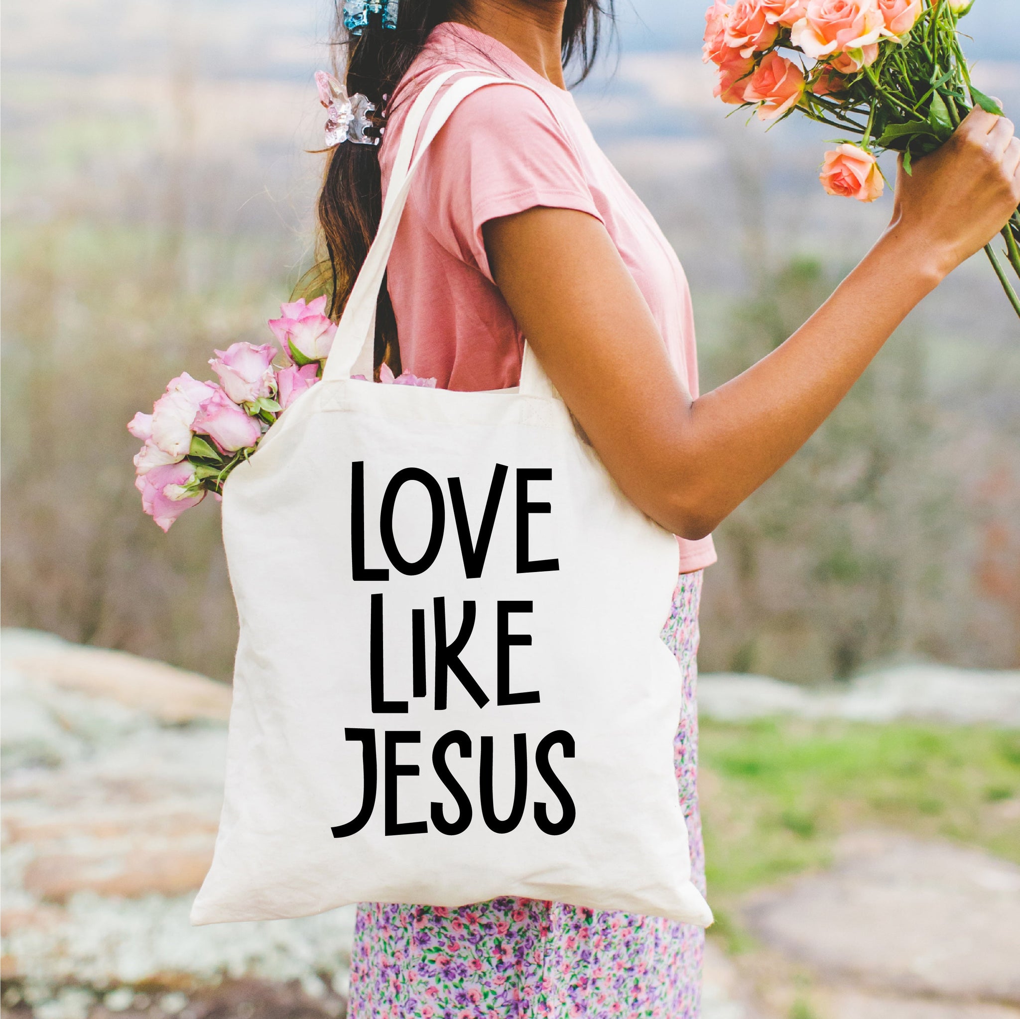 • Signature Little Mama Shirt Shop® design on a canvas tote.