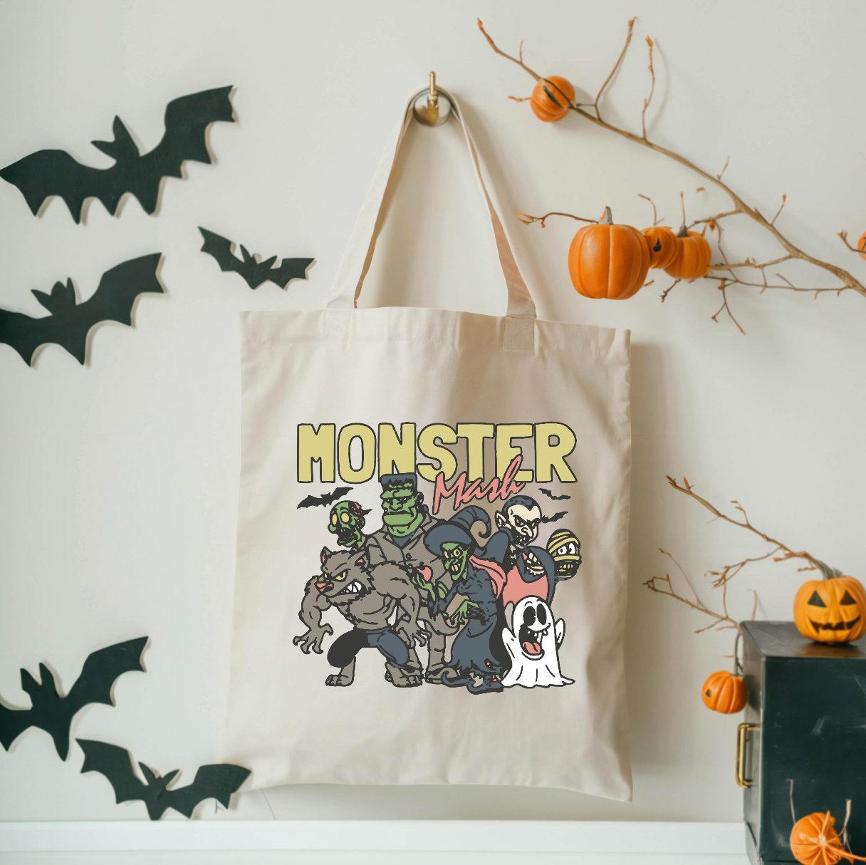 • Signature Little Mama Shirt Shop® design on a canvas tote - perfect for trick or treating!