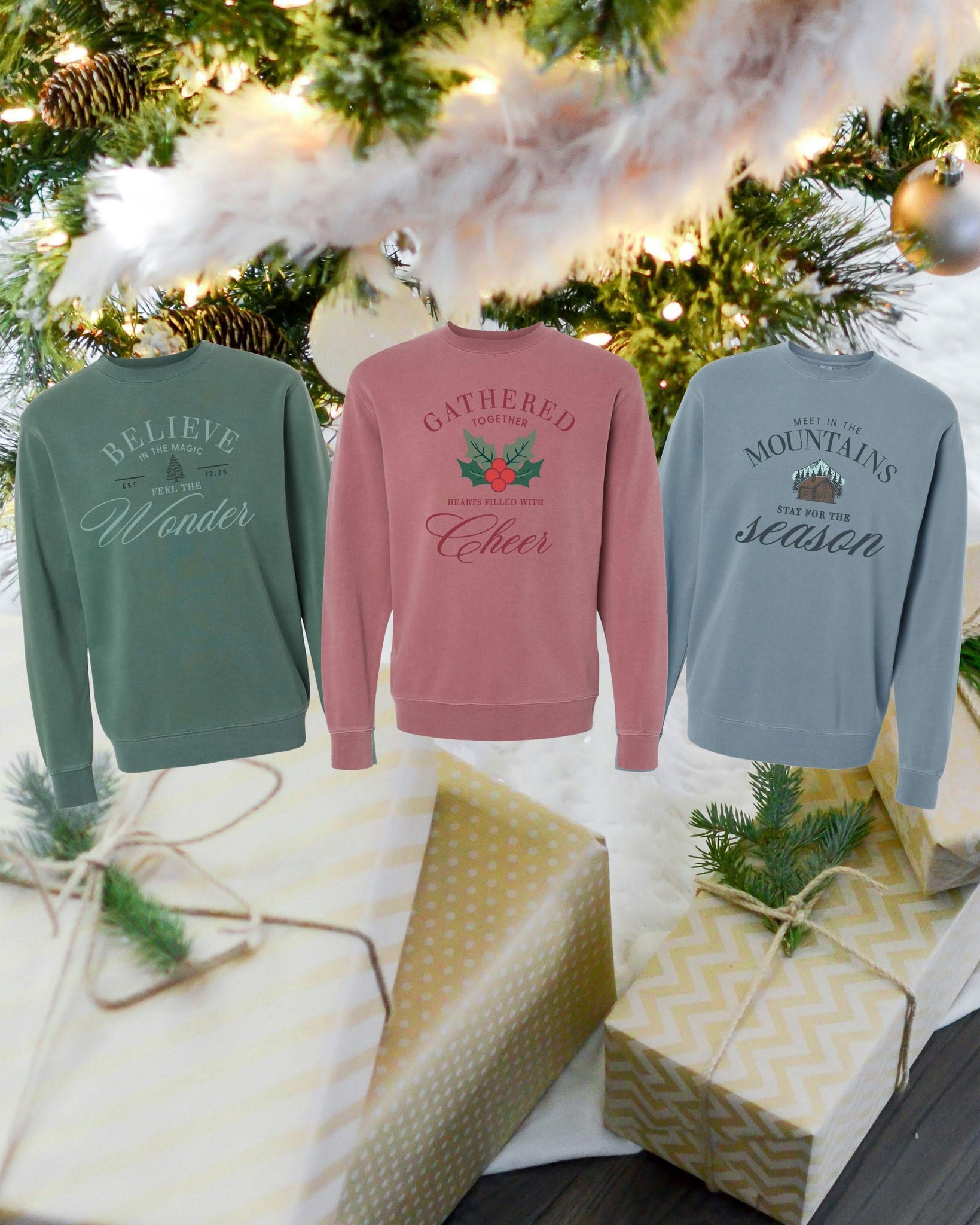 Step into the magic of the season with The Winter Lodge Collection — a cozy trio of pigment-dyed sweatshirts inspired by mountain mornings, twinkling lights, and the joy of gathering together. Each design captures a piece of winter wonder, making this collection perfect for holiday adventures and fireside lounging alike.