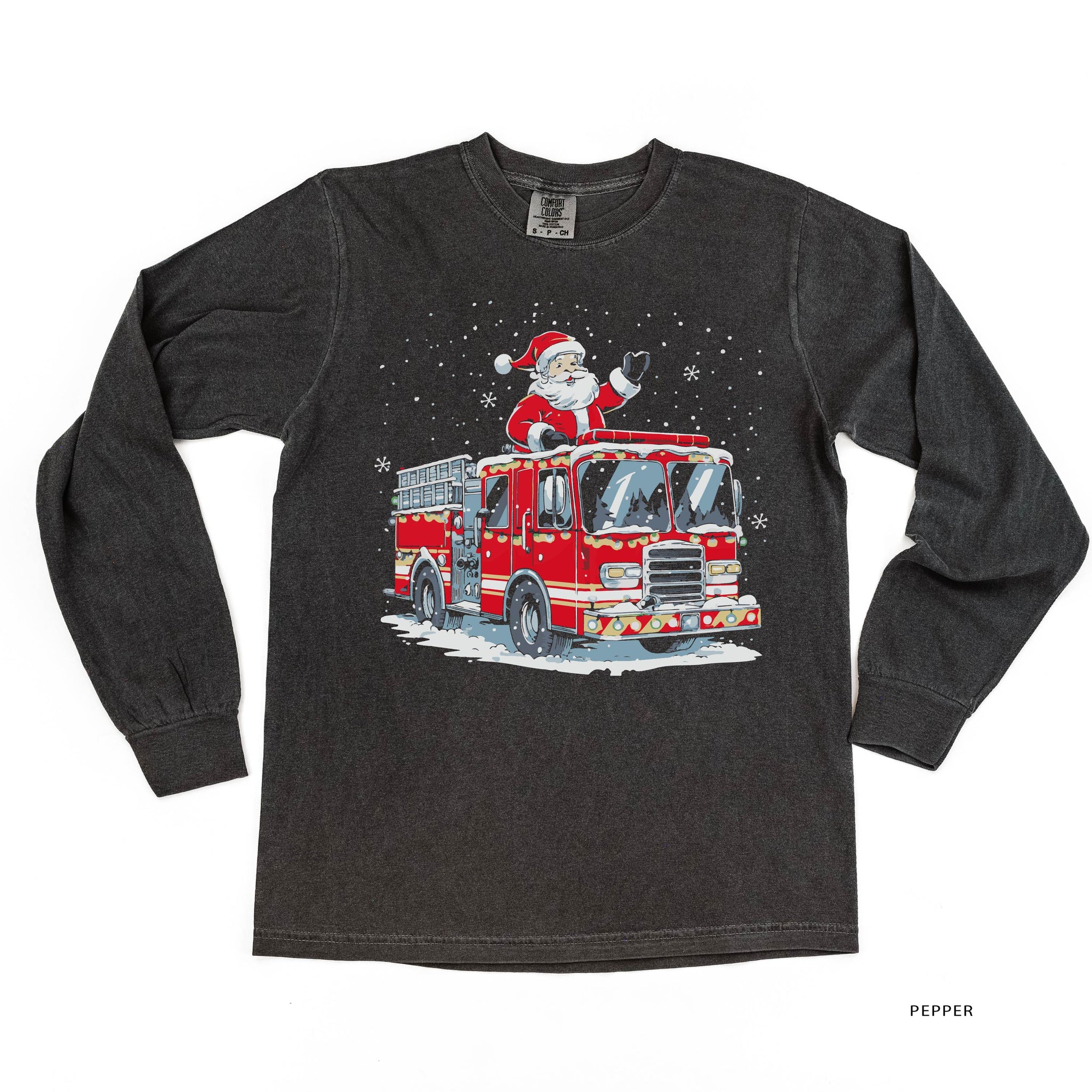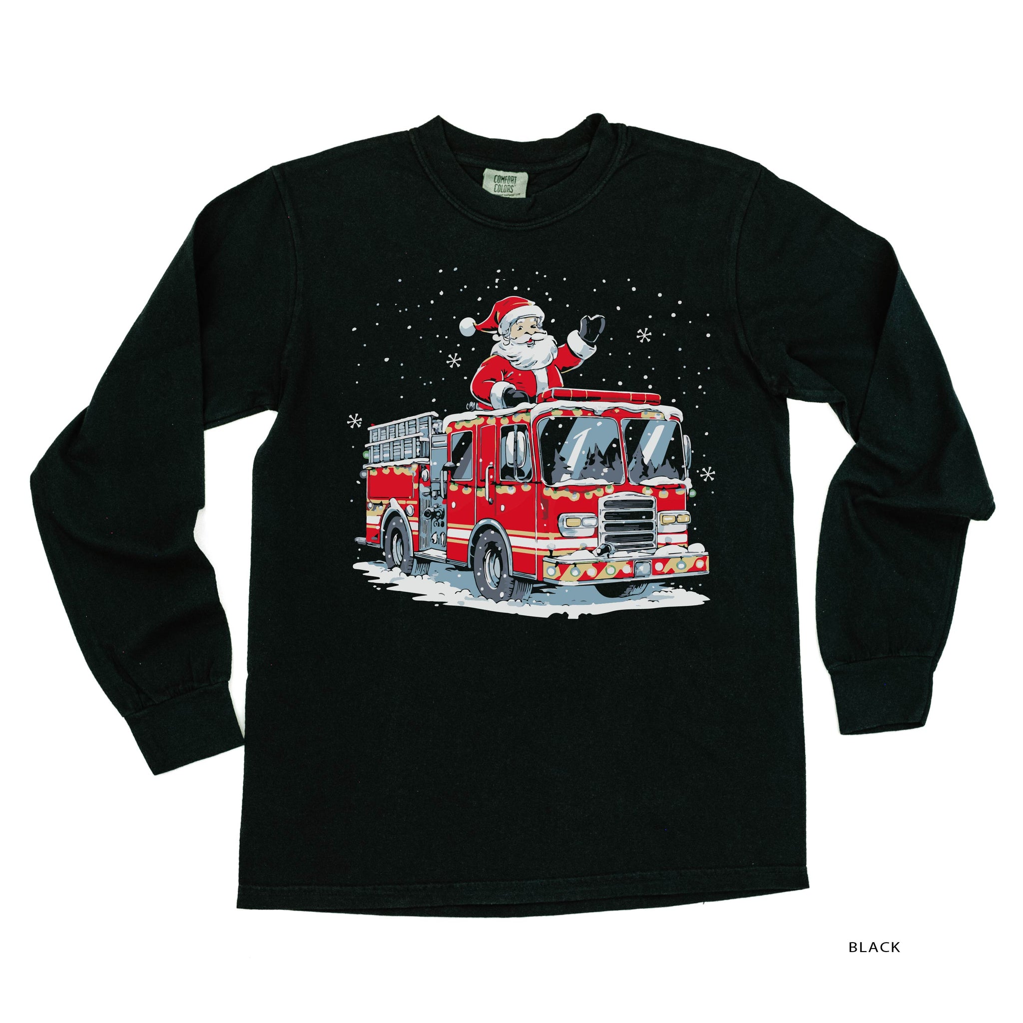 Firetruck Santa - Long Sleeve Comfort Colors Tee