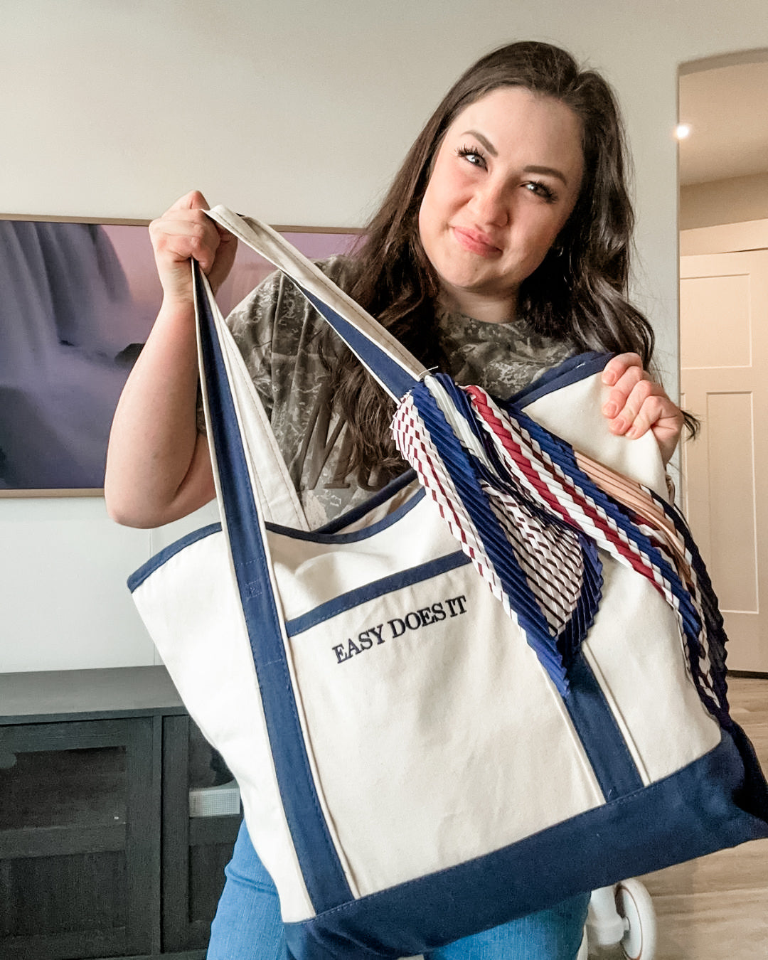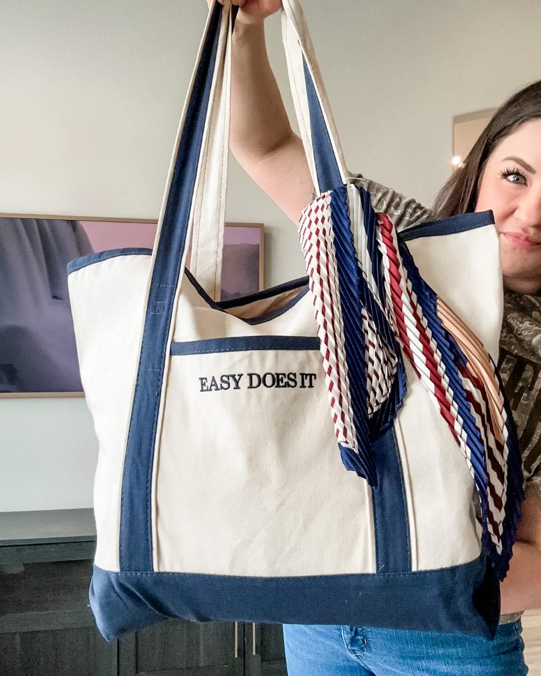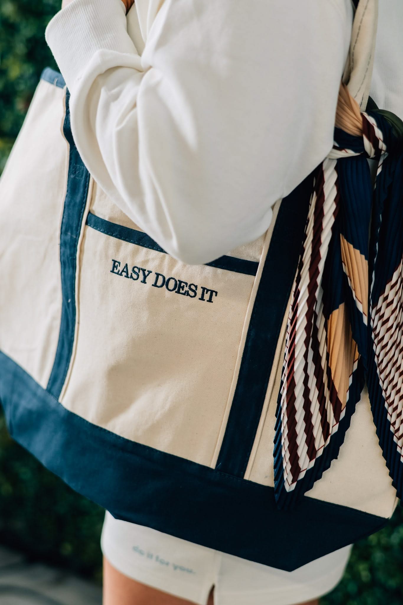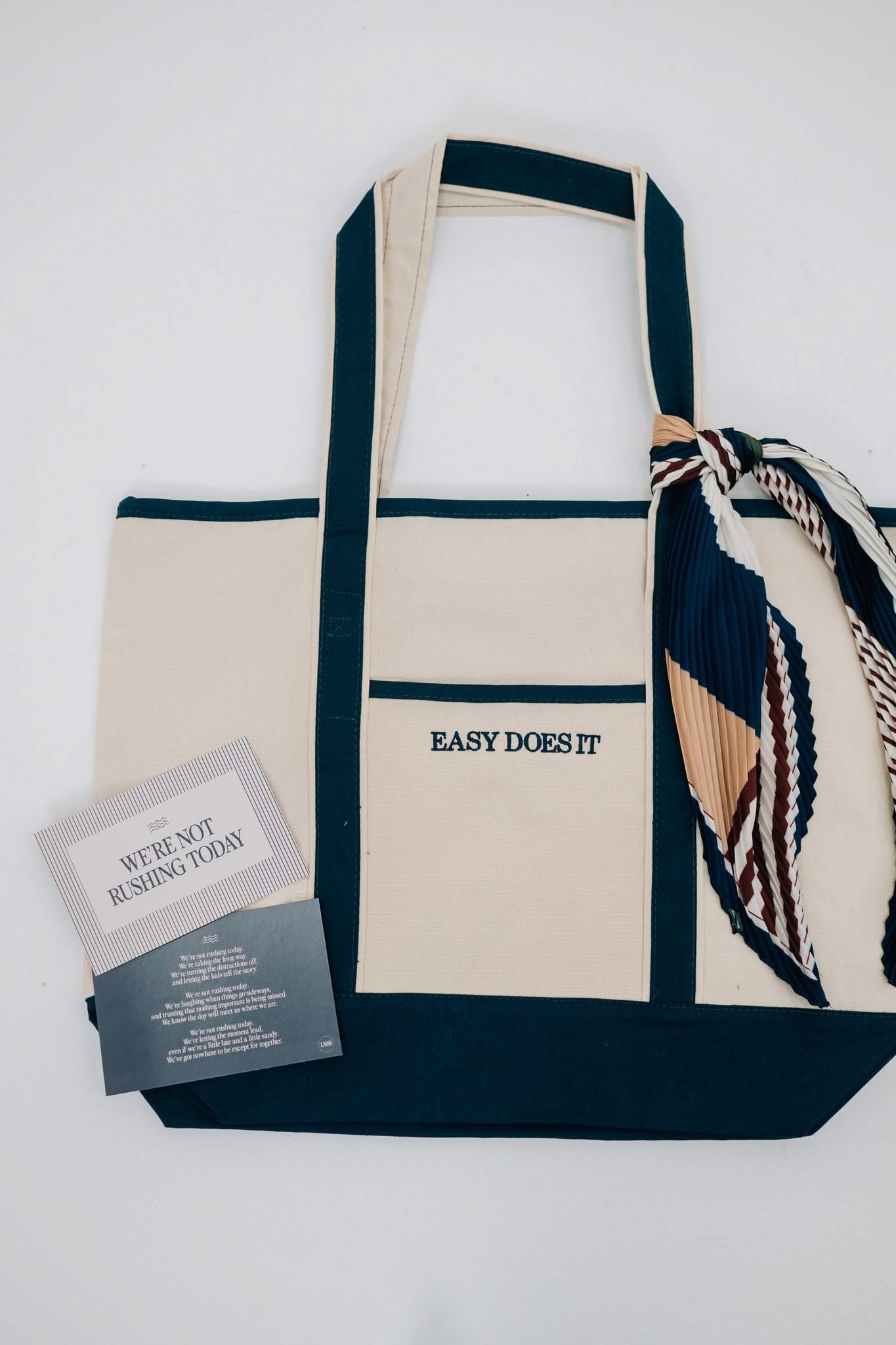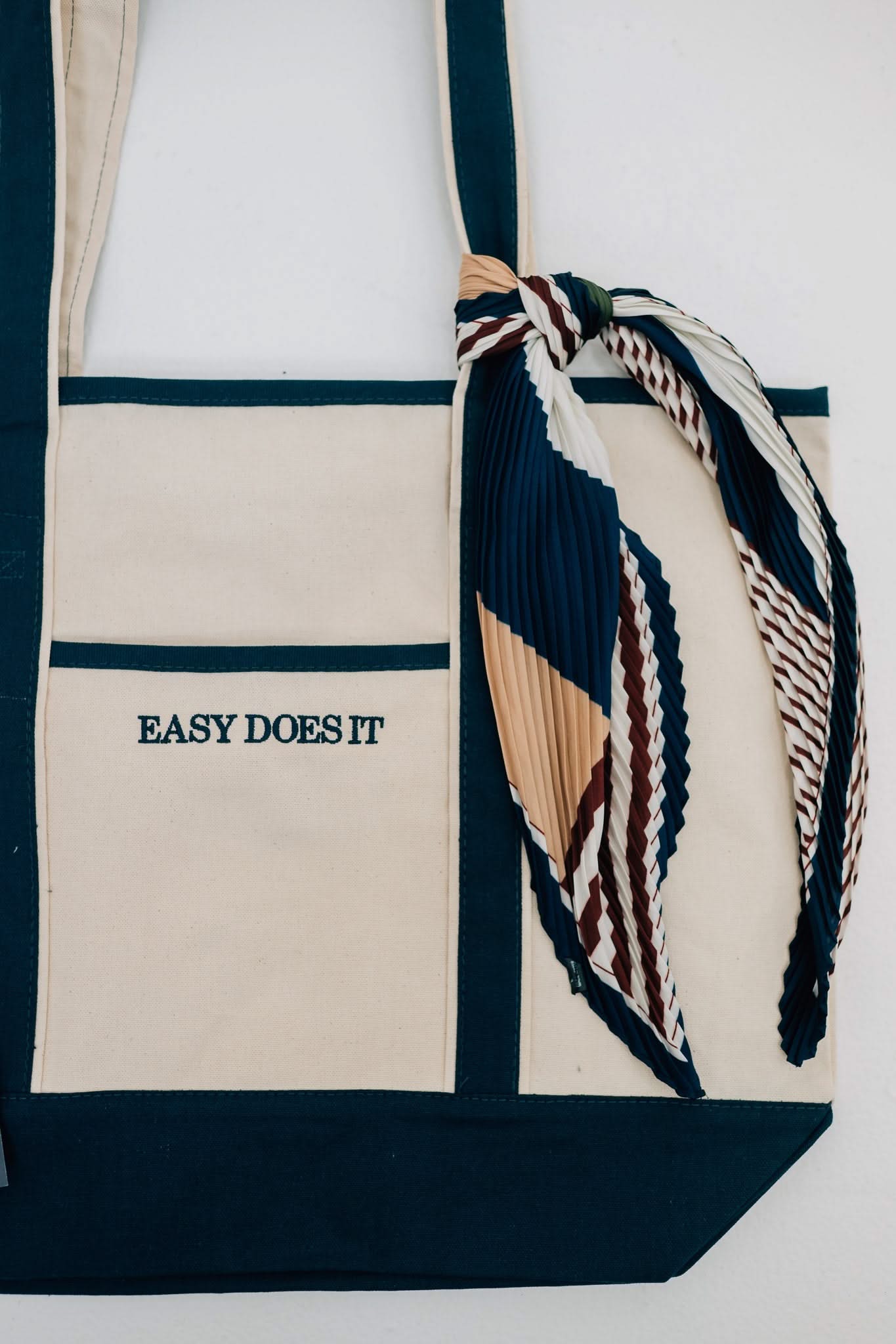 Embroidered “Easy Does It” reminder