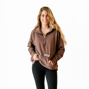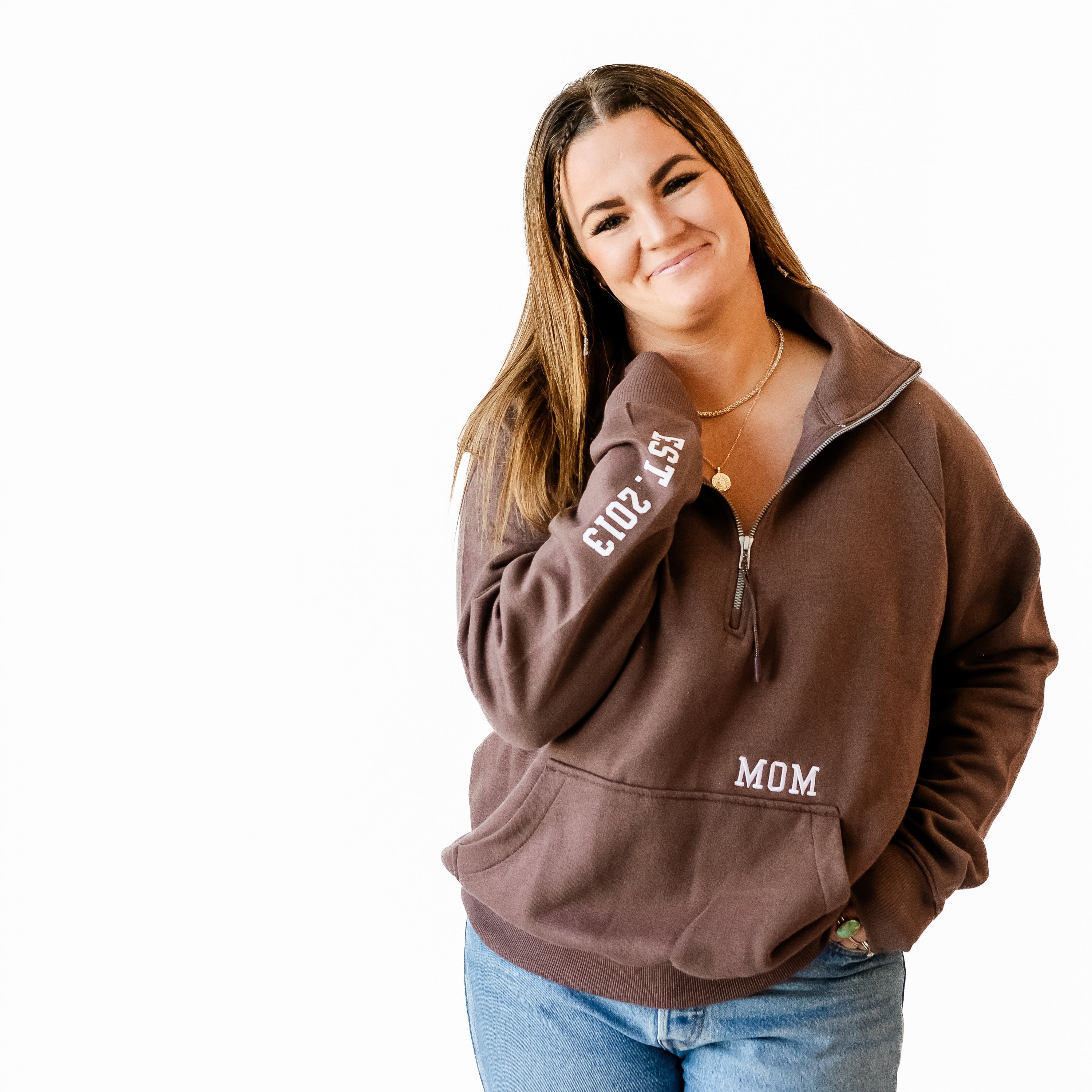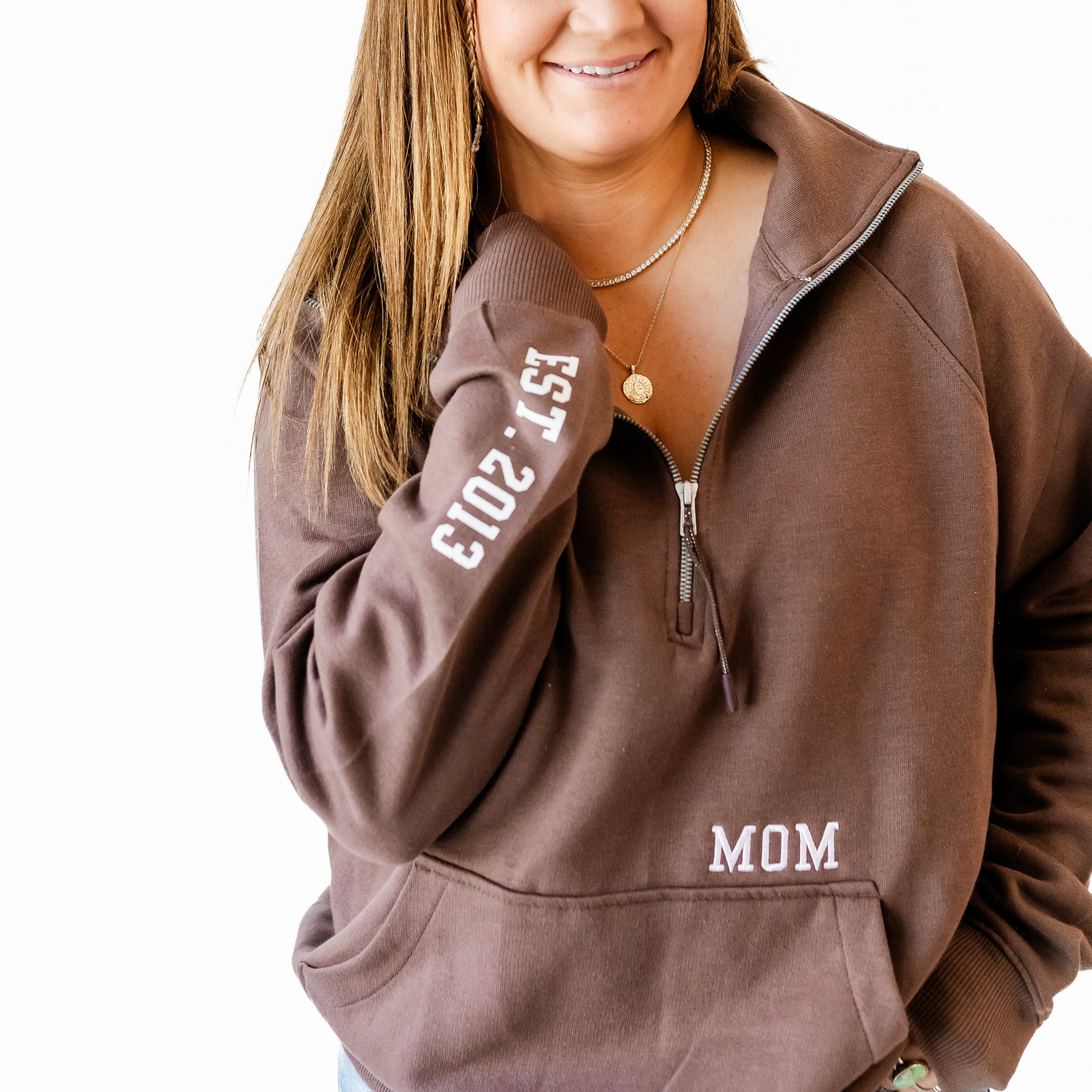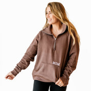 Chocolate Brown Quarter Zip Fleece - Embroidered MOM w/ EST. YEAR