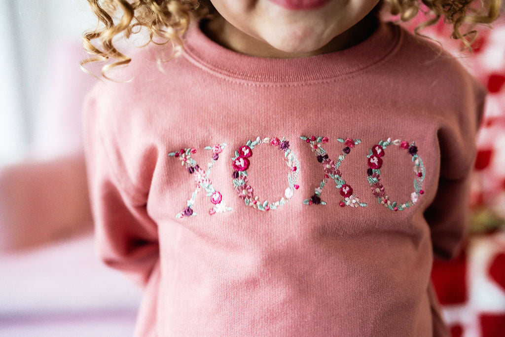 Embroidered - Floral XOXO - Child Sweater