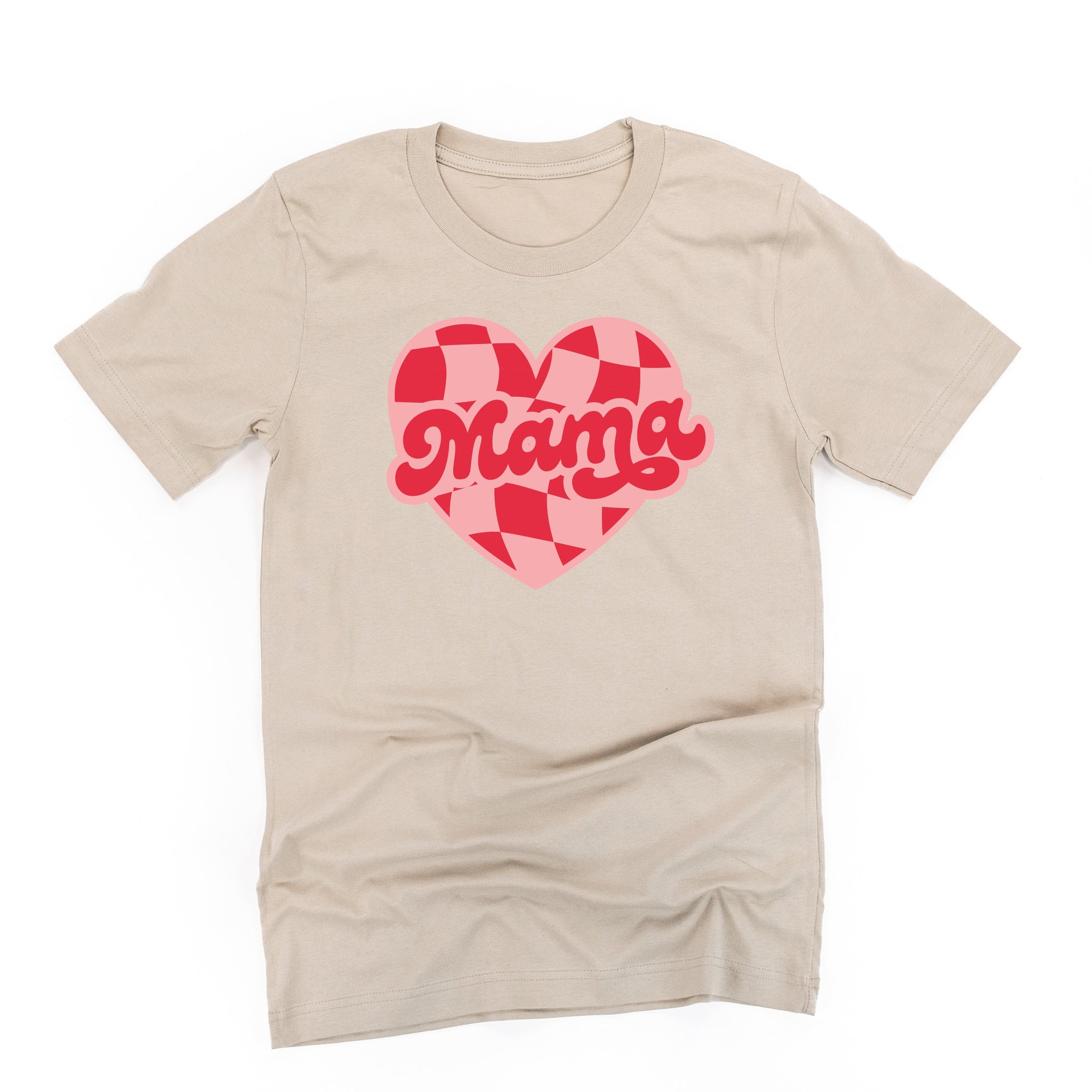 Mama - Pink & Red Checker Heart - Unisex Tee