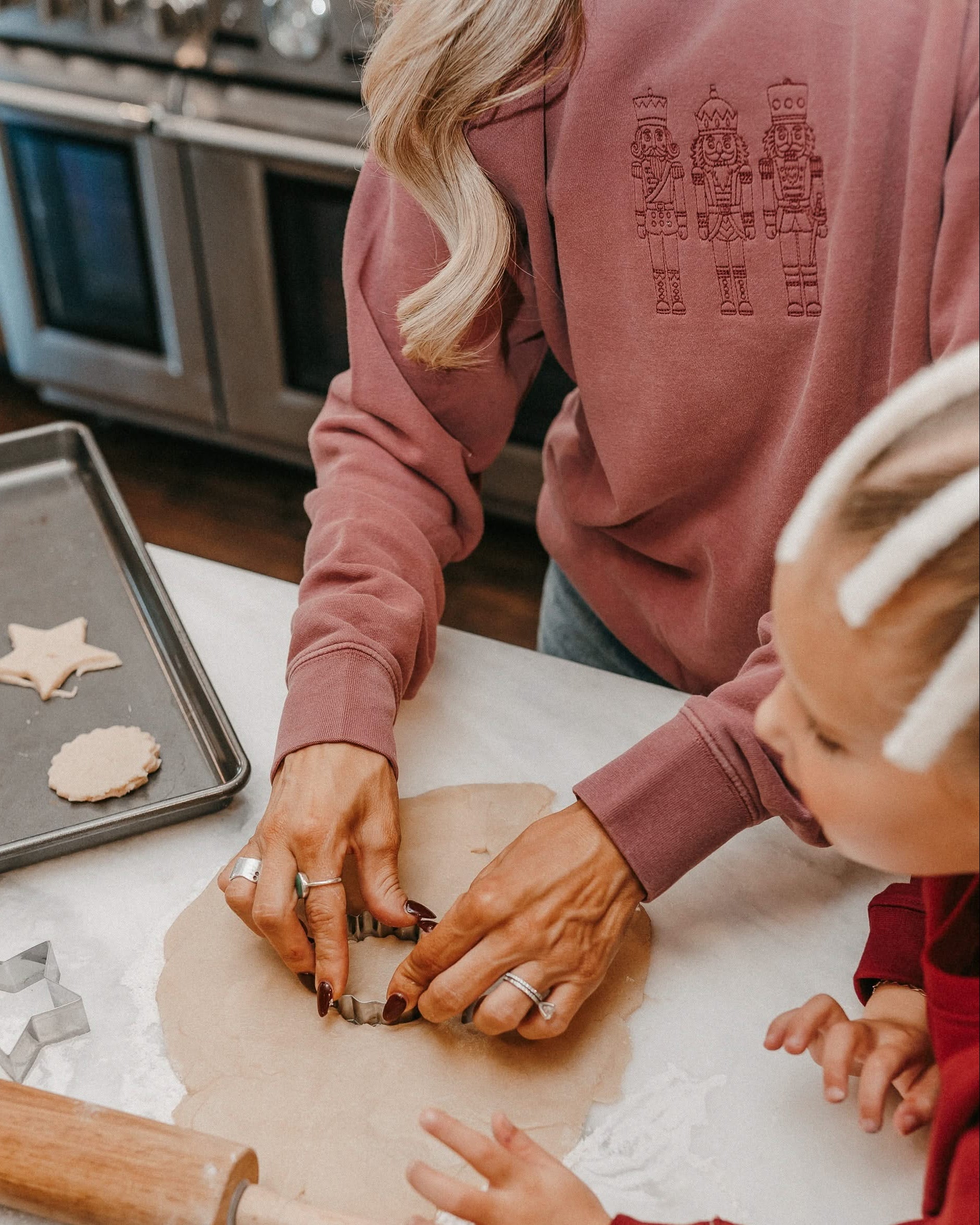 3 Nutcrackers Tone on Tone Embroidered Pigment Crewneck – Classic Holiday Sweatshirt | Little Mama Shirt Shop