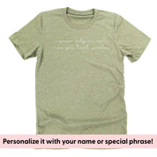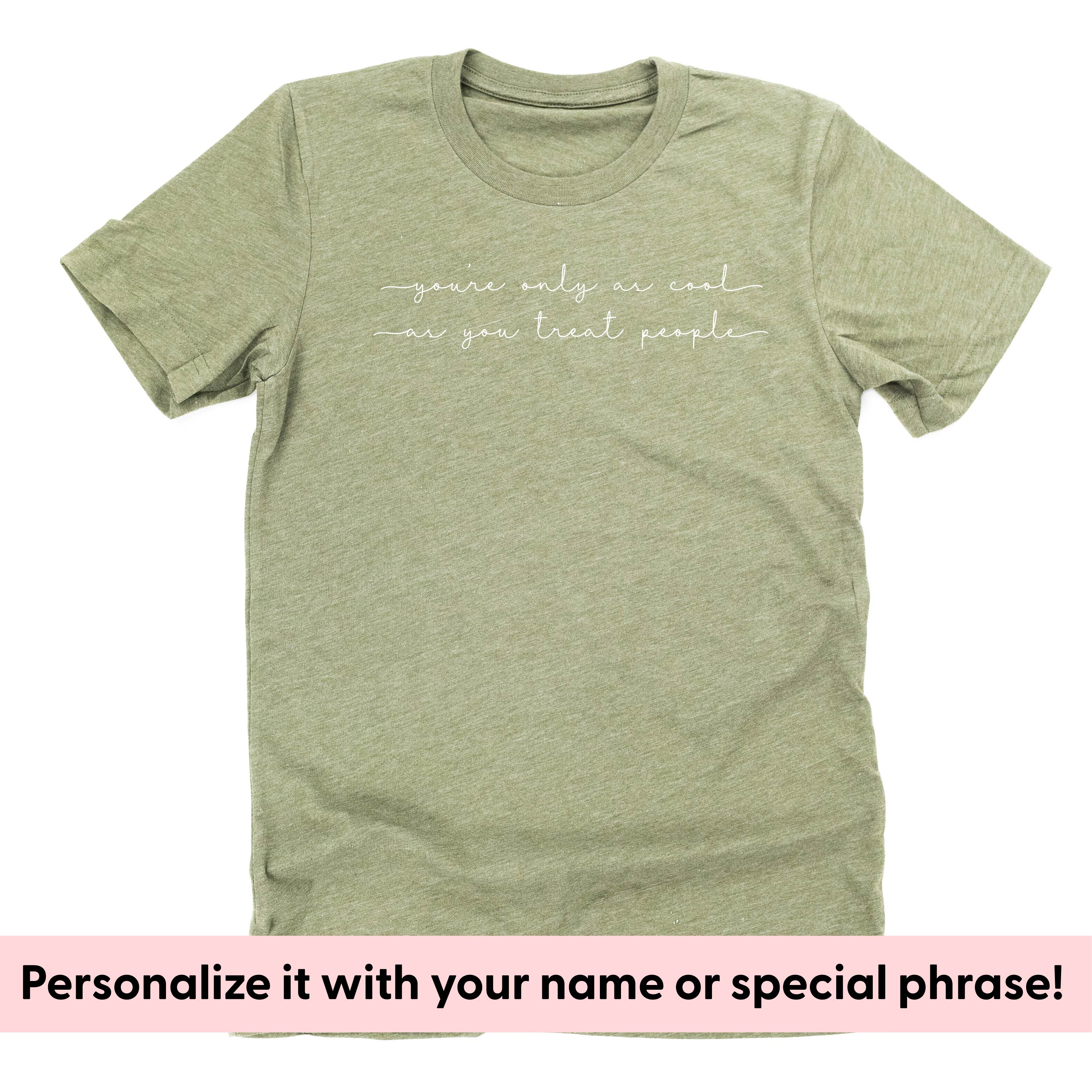 Personalize your shirt with the words or phrases of your choice! This is the perfect option for family reunions, birthdays, family mottos, custom grandparent names, memorial shirts... the possibilities are endless.This item is final sale. Little Mama Shirt Shop has the right to deny any designs that are crude, vulgar, or inappropriate.Please allow up to 10 days extra processing time for custom items. All Little Mama shirts are unisex sizing. They run slightly larger than typical women's shirts and slightly smaller than typical men's shirts. We recommend ordering your normal size for a regular fit.