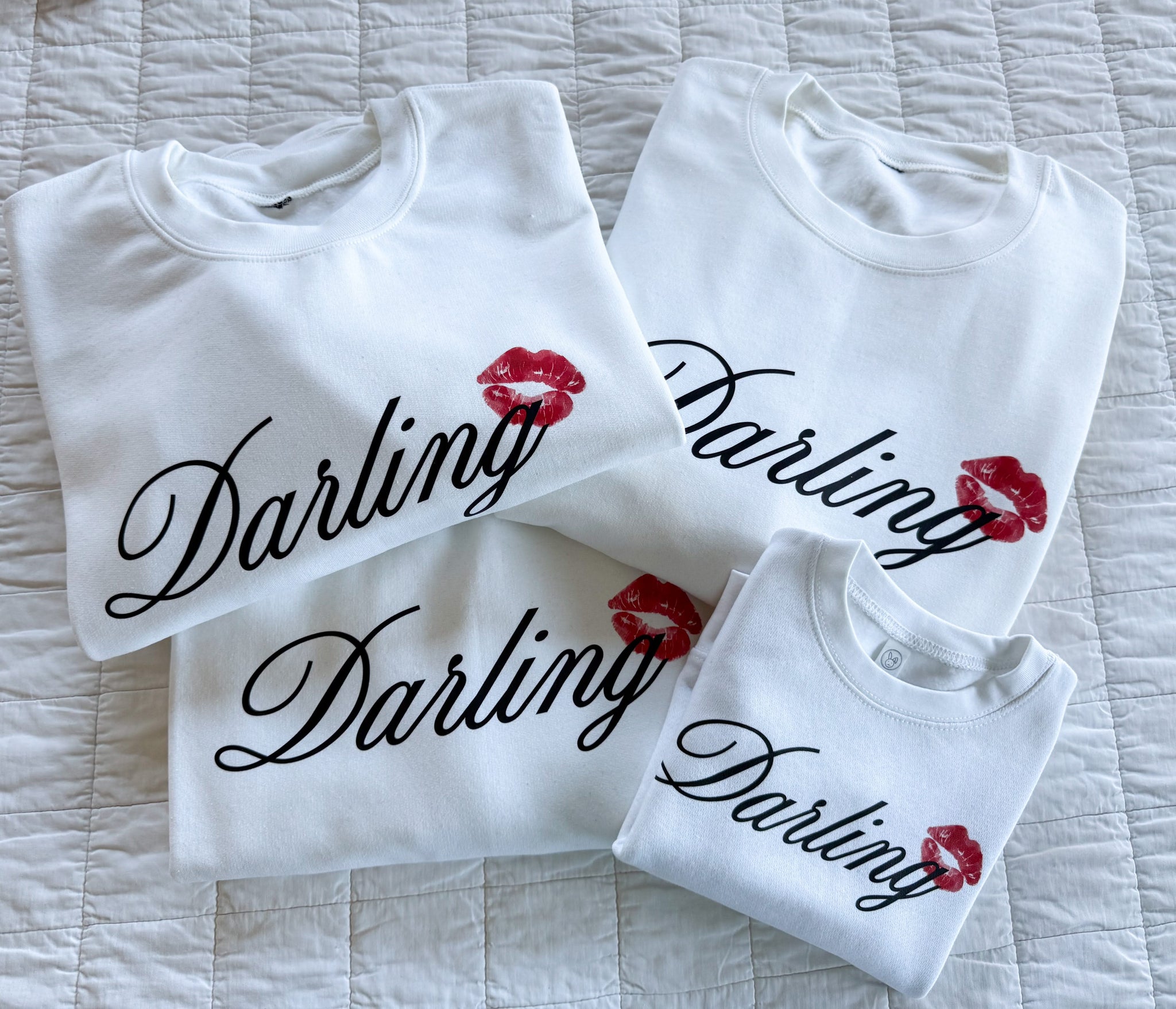 • “Darling” script design with kiss mark accent