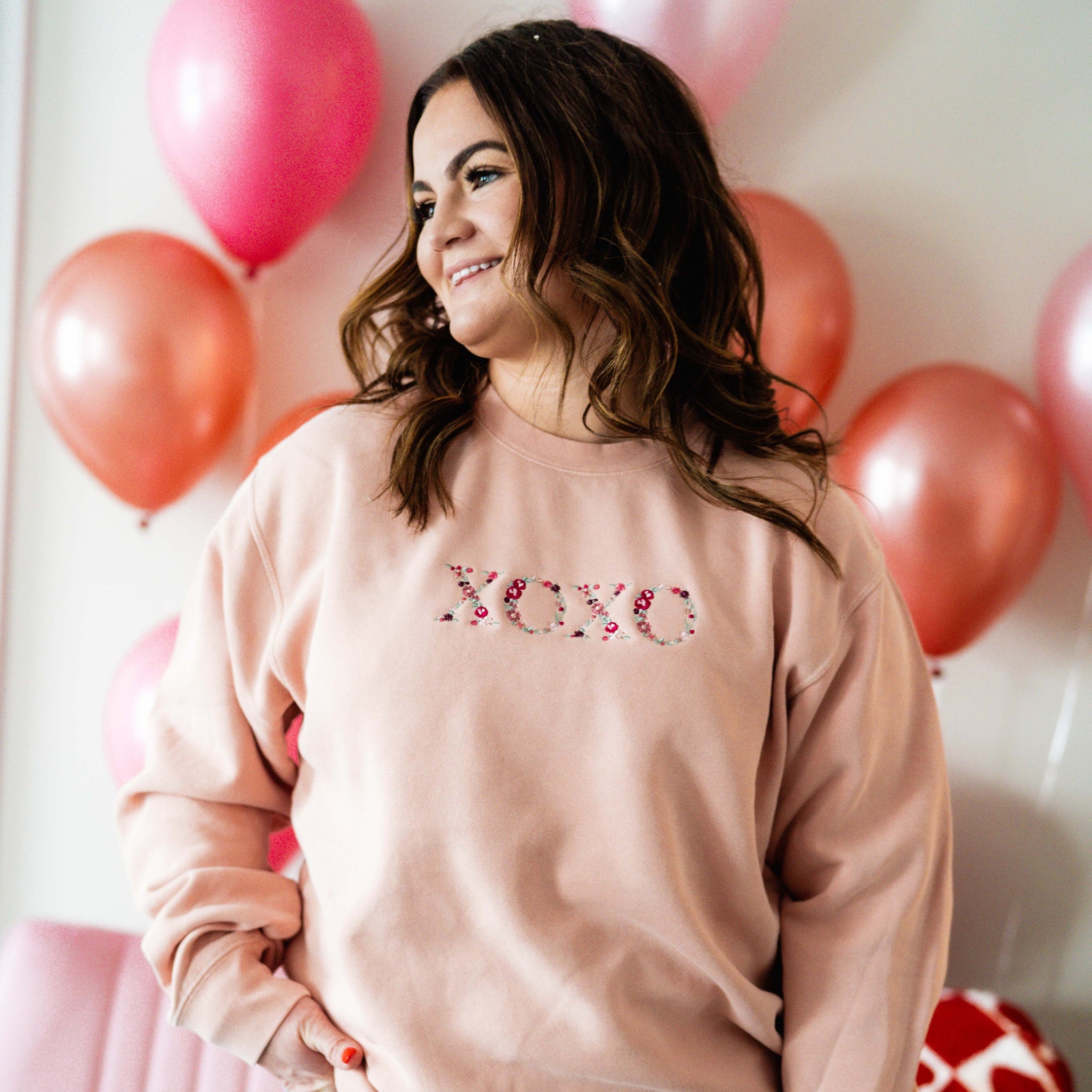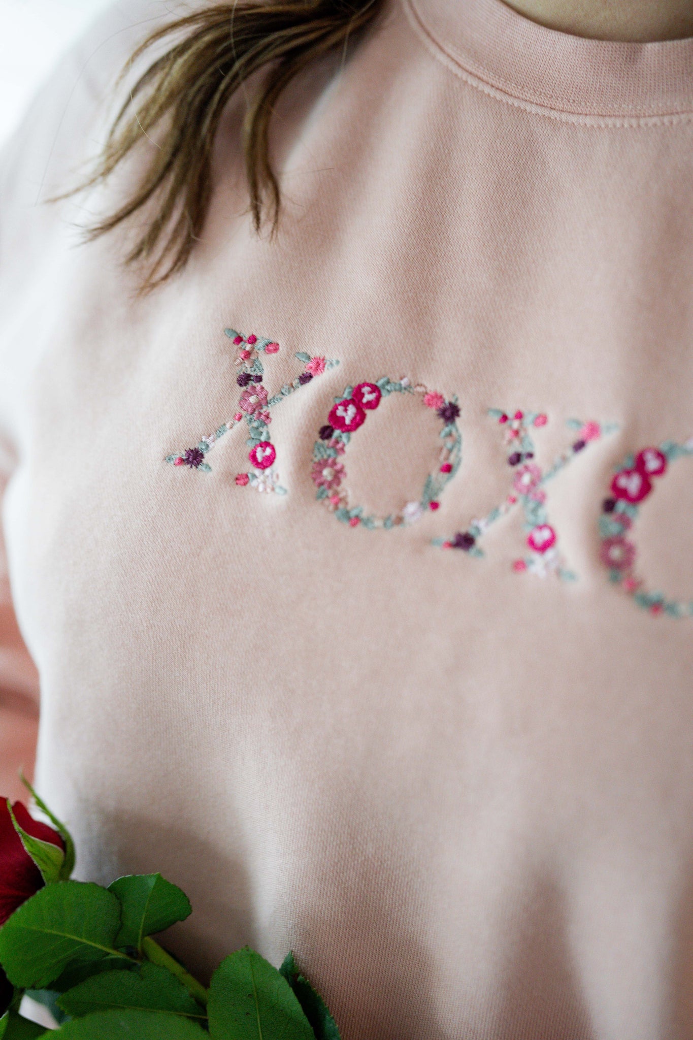 Embroidered Pigment Crewneck - Floral XOXO