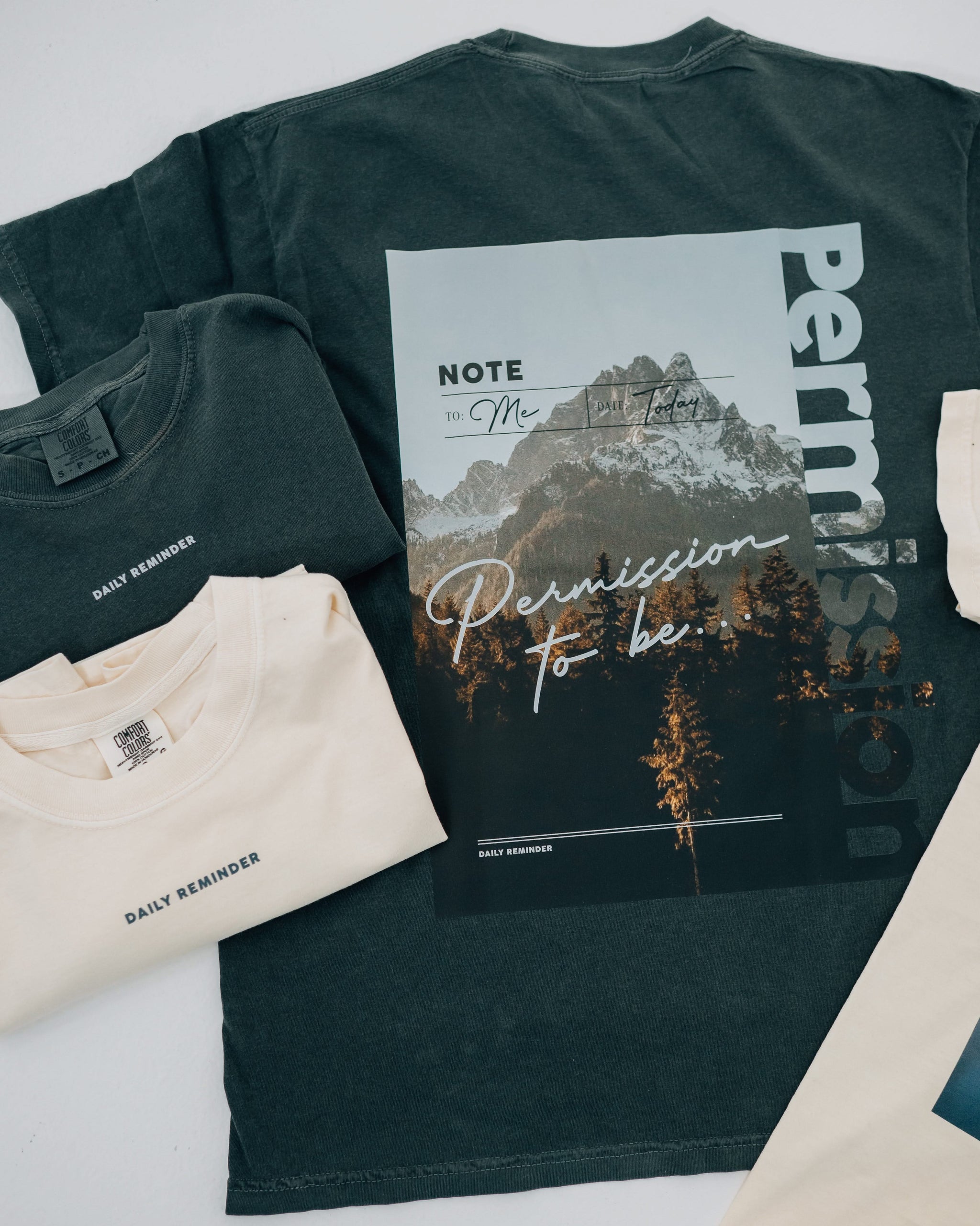 - "Permission To Be" message – Beautiful mountain graphic design symbolizing strength and grounding
