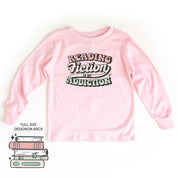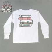 Reading Fiction is My Addiction on Front w/ Books on Back - Child Long Sleeve Tee