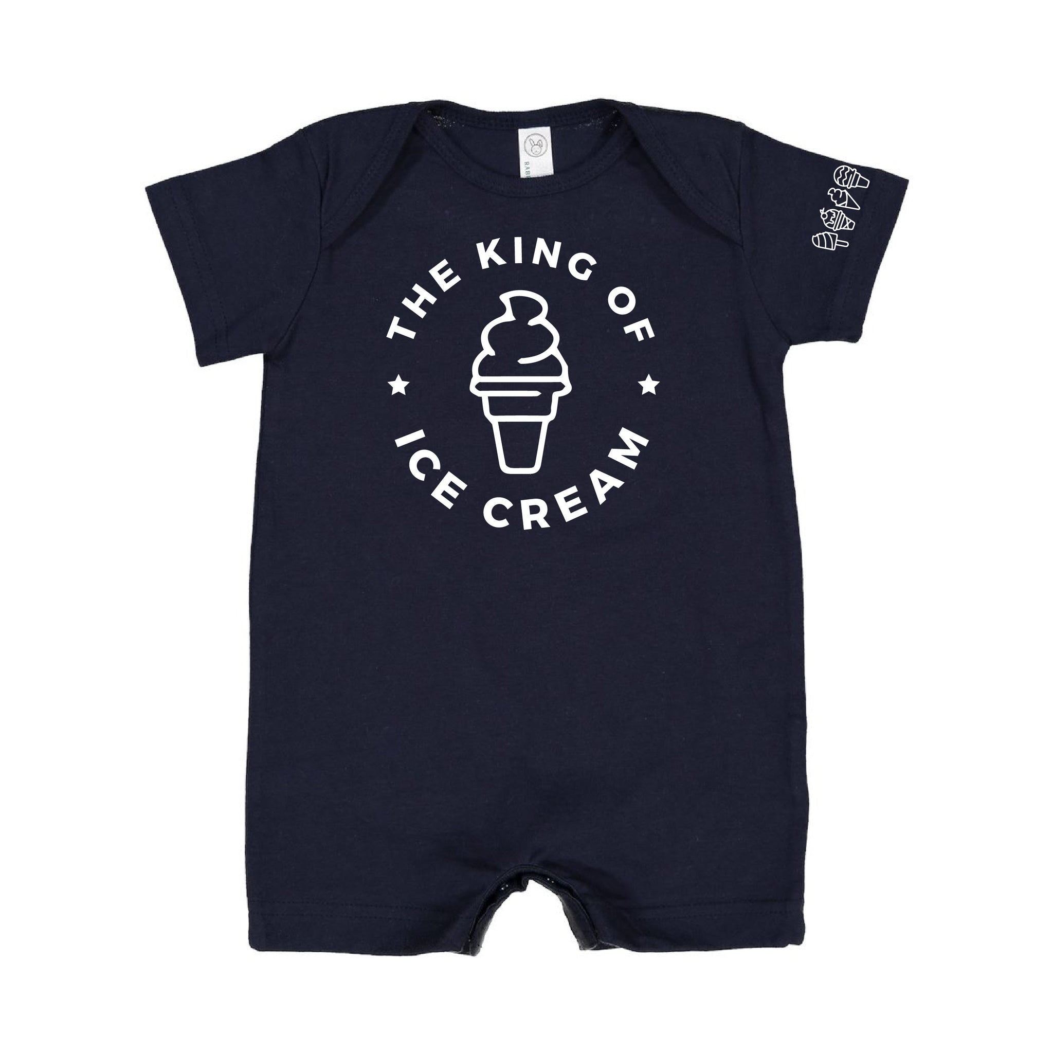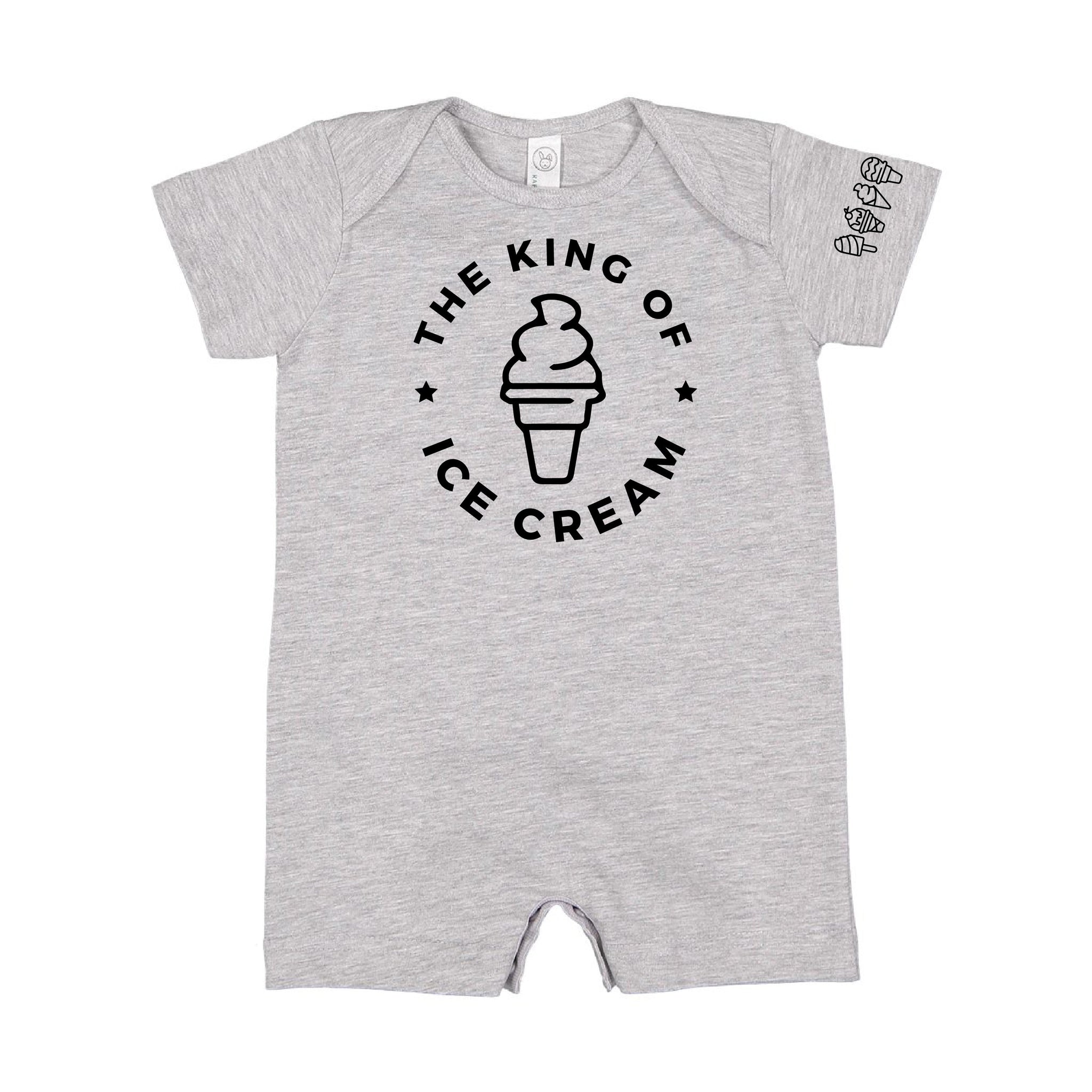 The King of Ice Cream - (Full Size) - Ice Cream Sleeve Detail - Short Sleeve / Shorts - One Piece Baby Romper